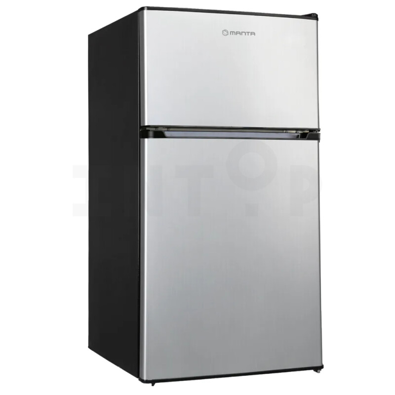 Manufacturer Manta Type Freestanding refrigerator with freezer Color Silver stainless steel/black Energy efficiency class E Electricity consumption, kW/year 148.92 Freezer location Top Refrigerator volume (l) 63 Freezer volume (l) 25 Total net capacity (l) 88 Dimensions (cm) 86.2 x 45.2 x 49.2 Dimensions (cm) H x W x D 86.2 x 45.2 x 49.2 Built-in dimensions - Refrigerator height (cm) 86.2 No Frost system No Freezer defrosting Manual Noise level (dB) 39 Quick cooling No Fresh zone Yes Bottle shelf Yes Ice generator No Dispenser No Reversible doors Yes Climate class N, ST, T